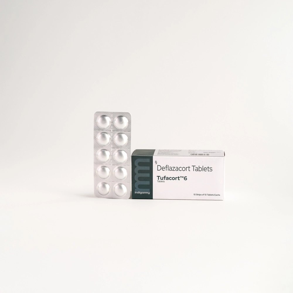 Tufacort™ 6 contains Deflazacort, a glucocorticoid with anti-inflammatory and immunomodulatory properties. It works by regulating inflammatory mediator activity involved in immune and hypersensitivity responses.