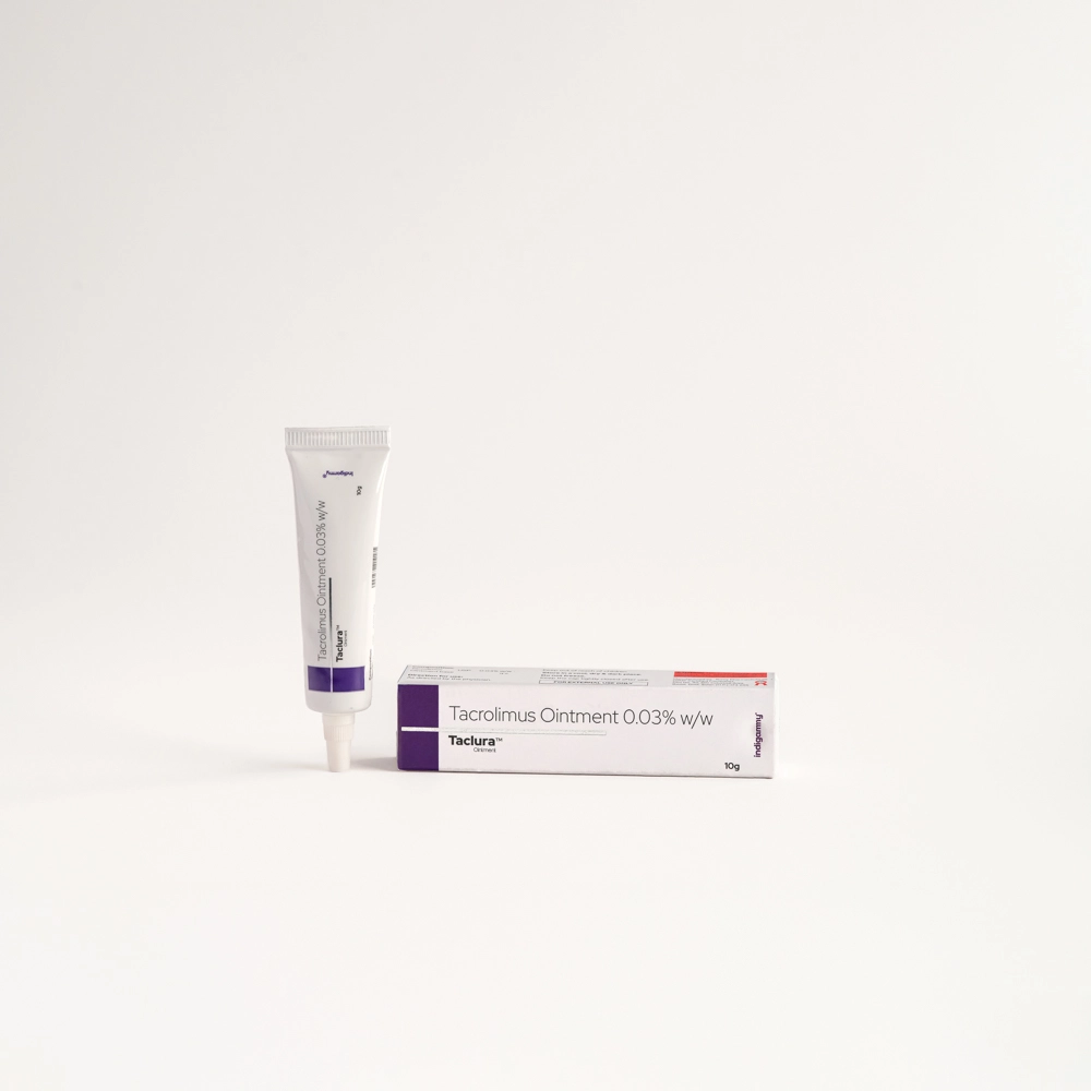 Taclura™ contains Tacrolimus, a topical calcineurin inhibitor that works by modulating T-cell activation and reducing release of inflammatory mediators involved in eczema and related dermatoses.